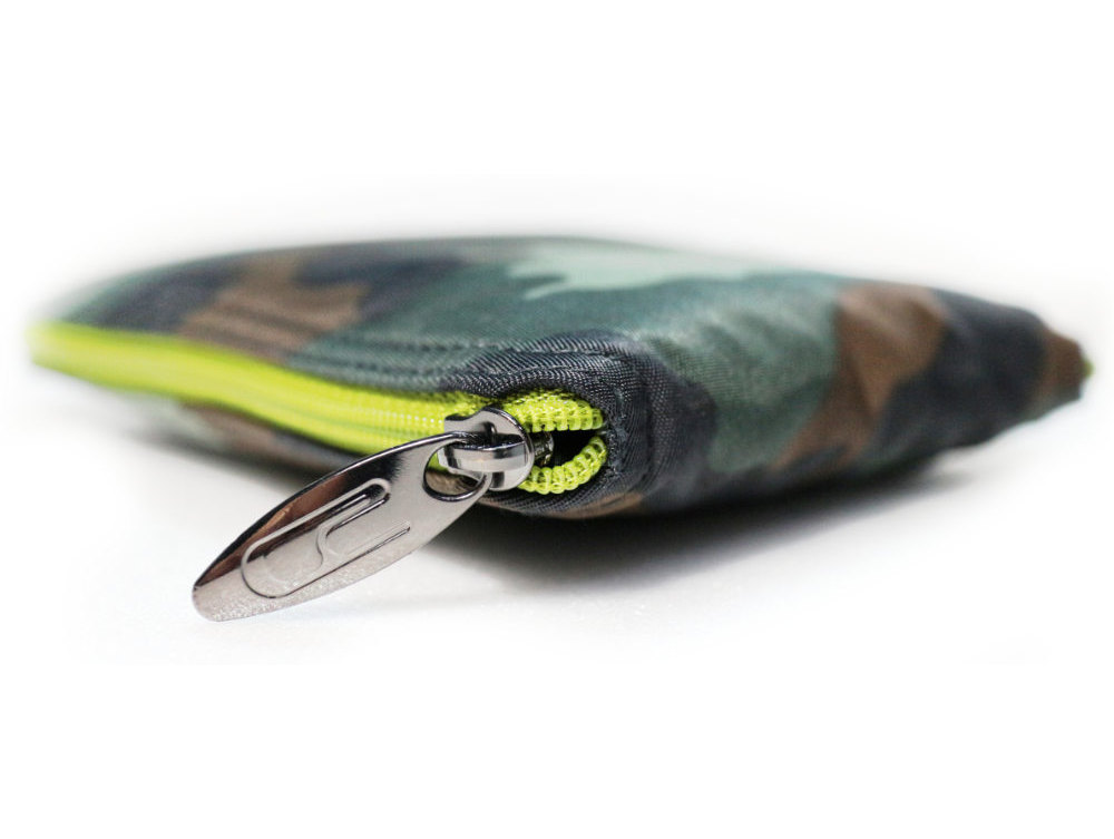 上品な雰囲気が漂うカモフラージュ模様の生地を採用し都会的な雰囲気の縦長の折り畳みバッグに仕上げました。