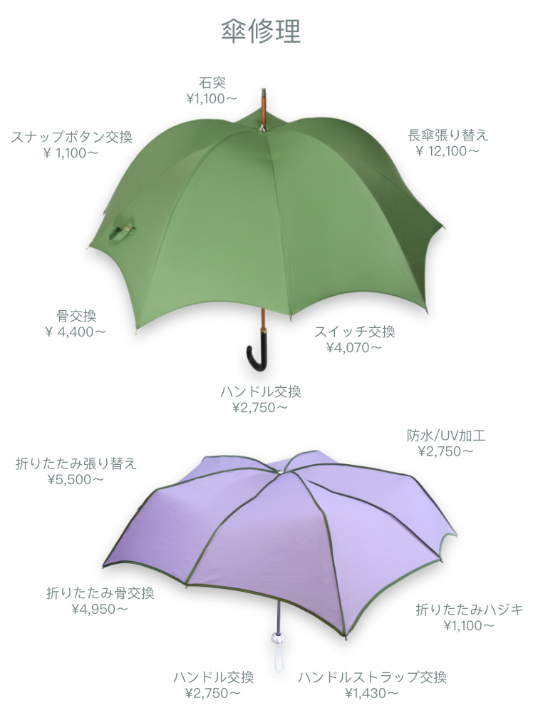 傘のお修理 ディチェザレデザインではご愛用いただいているディチェザレデザインの傘のお修理を承っております。 ご用命の際はおもとめくださった店舗またはディチェザレデザインへご連絡くださいませ。 ディチェザレデザイン 傘のお修理