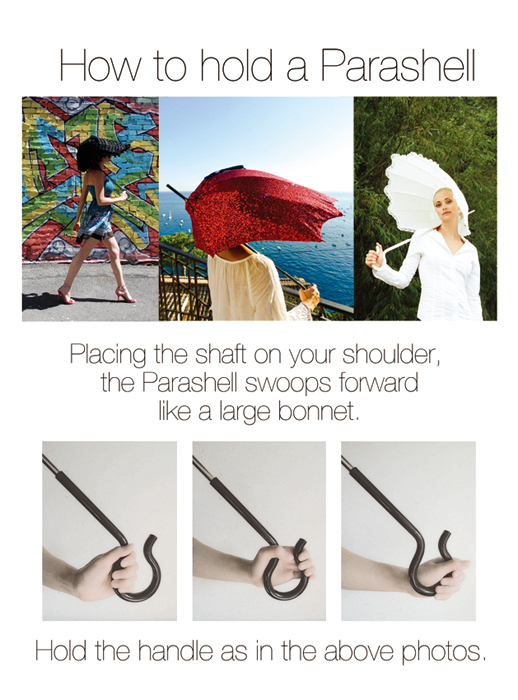 The Parashell Chic parasol is an elegant harmony of form and function for those seeking sanctuary from the Sun. The canopy is made from a UV (100% light/UV cut) and waterproof material to protect from the sun and the rain. It’s unique asymmetrical seashell shaped form recalls a noble elegance and beauty from times gone by. Enter a new age of beauty with the Parashell parasol.