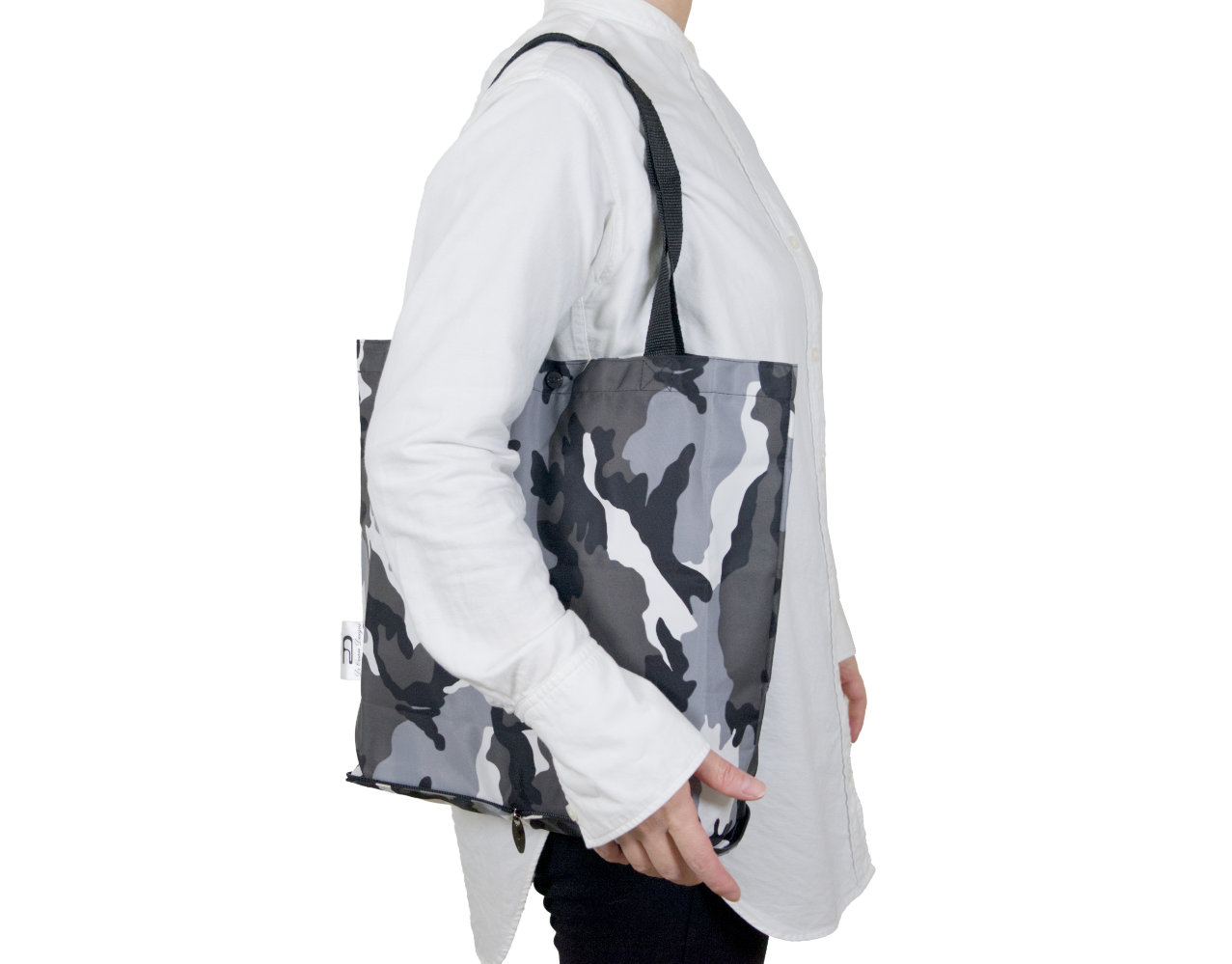 The Tall UrbanCamo Folding Tote bag is an eye-catching tote bag made of our exclusive and stylish waterproof UrbanCamo camoflage material. This fashionable and convenient tote bag can carry up to 7kgs and folds down into a small wallet-type pouch. Even if you’re carrying heavy load, you’ll look stylish with this chic folding tote bag!