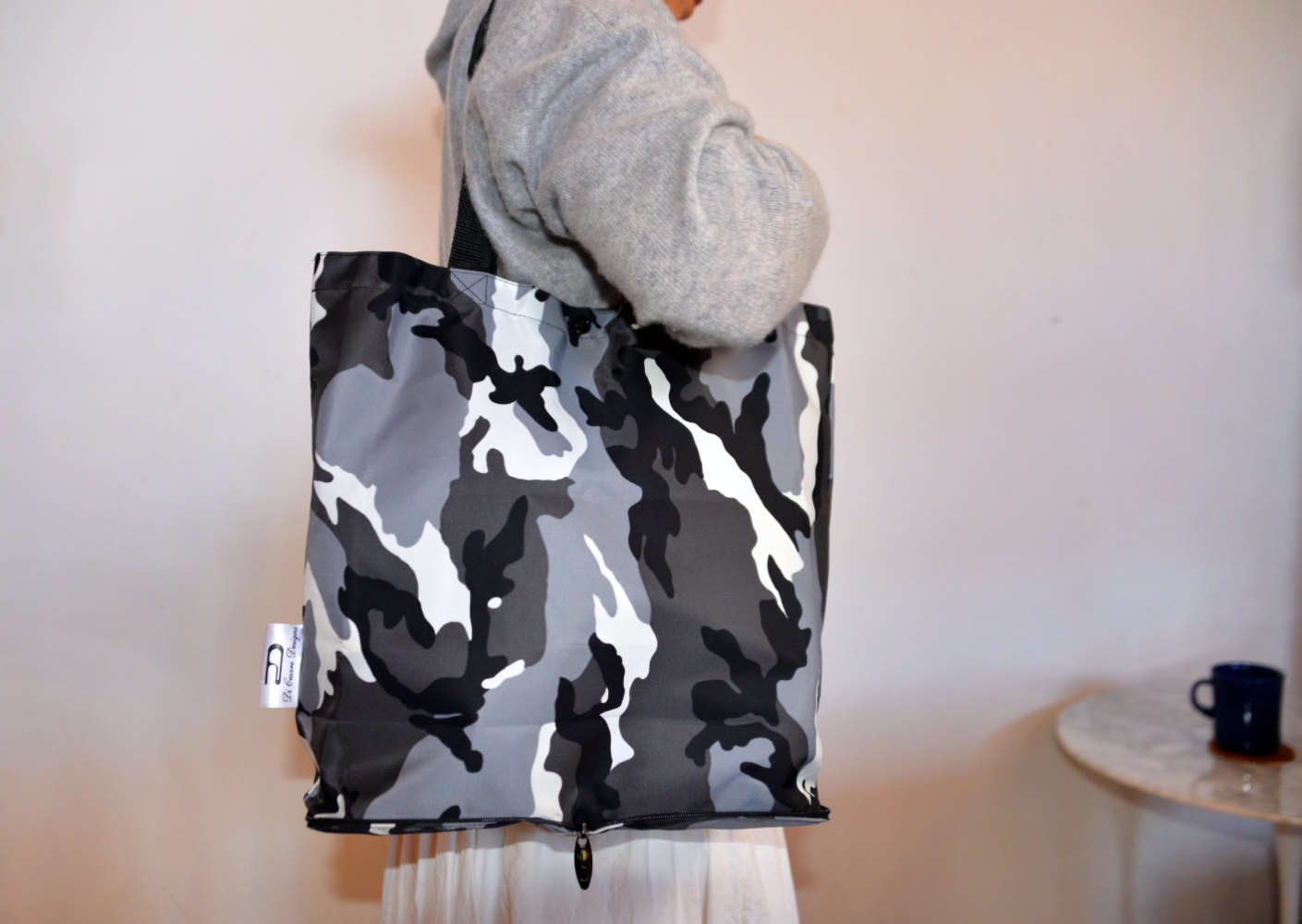 This eye-catching tote bag made of DiCesare Designs exclusive and stylish waterproof UrbanCamo camoflage material. This fashionable and convenient tote bag can carry up to 7kgs and folds down into a small wallet-type pouch. Even if you’re carrying heavy load, you’ll look stylish with this chic folding tote bag!